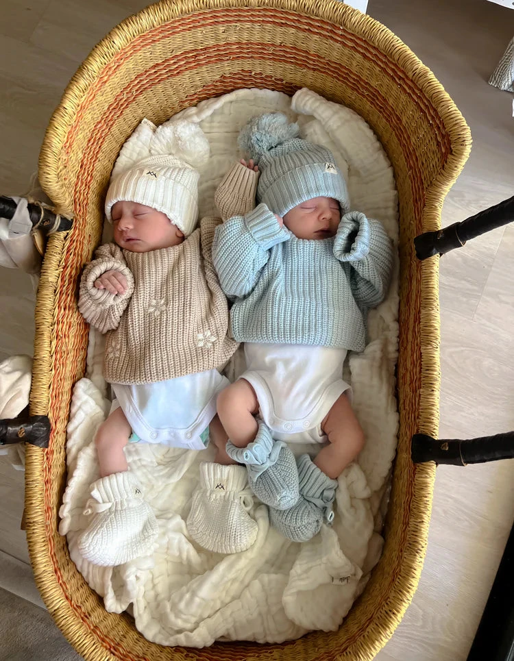 Matching Textured Knit Beanies, Topknots & Bodysuits available.