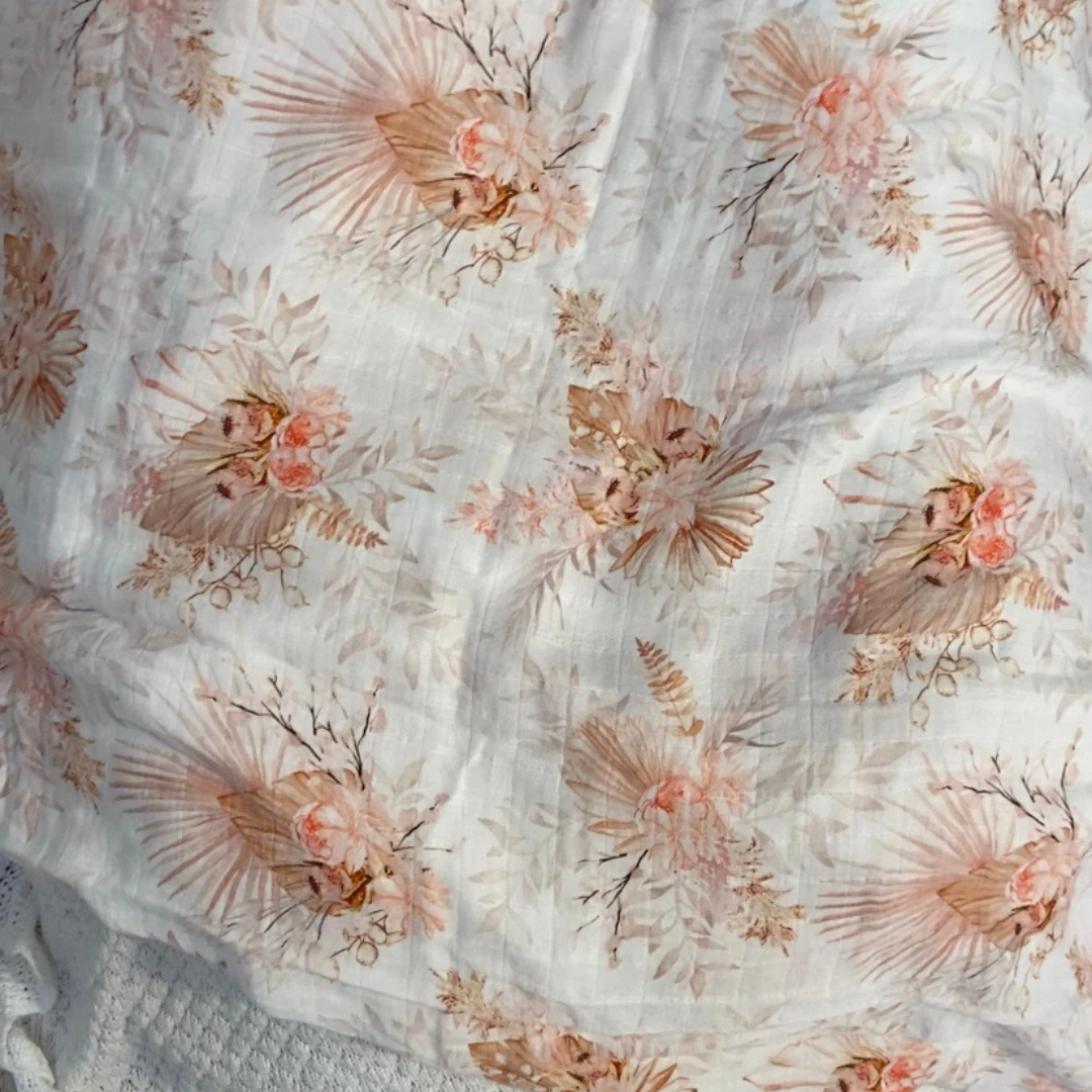 Our super-soft bamboo cotton swaddles are available in our hand-painted native blooms design.