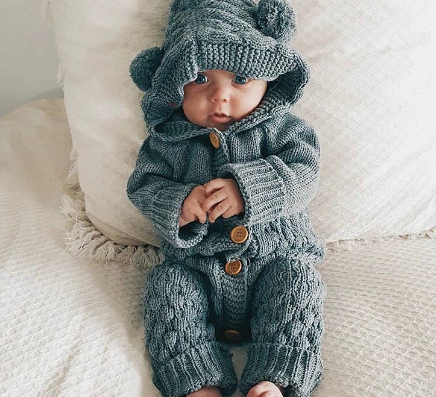 Keep your little one cozy and cute with the Bear Knit Onesie in Charcoal. Made from soft knit material, this onesie features an adorable bear design that is perfect for playtime or snuggling up. Ideal for layering or wearing on its own, this onesie is sure to become a staple in your baby’s wardrobe. Order yours today!