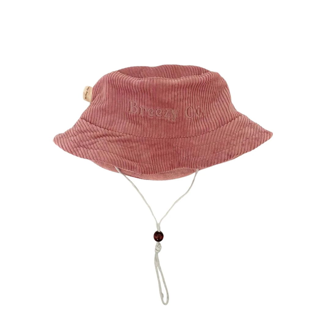 Our new corduroy bucket hats are finally here! A fun washed plum can suit many outfits, whether it’s to head to the beach, day-care, a wedding or a playground, this hat is the perfect go to! Featuring our logo embroidered in coordinated thread to make it subtle, this bucket hat will be the trendiest hat your bubba owns! Our bucket hats also feature a drawstring with a unique tortoise shell coloured ball for easy adjusting, so they won’t leave your bubbas head, making it extra safe for outdoor play.