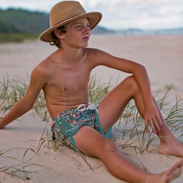 Our board shorts feature built-in compression shorts to reduce chafing and provide extra support. Designed with active boys in mind, these compression shorts ensure maximum comfort during all-day beach and poolside play. Therefore, enjoy worry free adventures with our innovative and comfortable boys’ swimwear.
