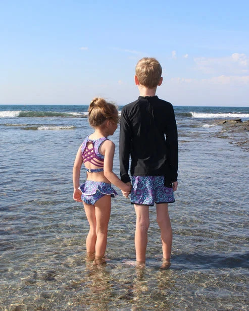 The Scottie Crop Bikini blends sporty style with age-appropriate design, making it the go-to choice for girls who are always on the move. The supportive crop top stays put, while the full coverage bottoms offer a secure fit she can count on. Whether she’s diving into waves, chasing the tide, or soaking up the sunshine, this girls bikini keeps her comfortable and confident all day long.