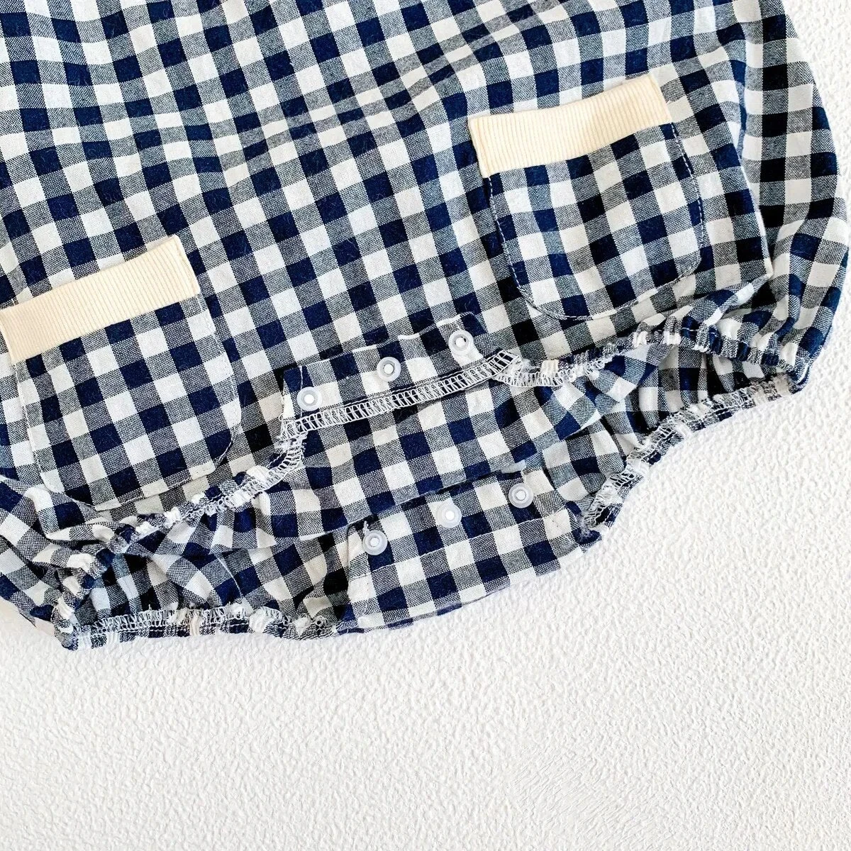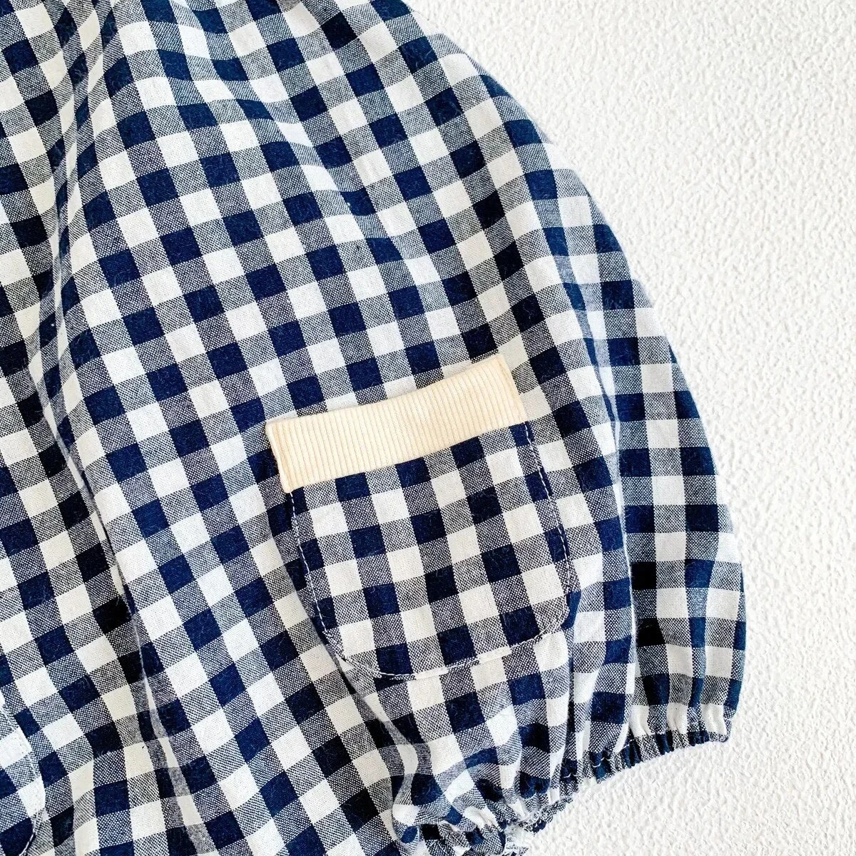 This stylish unisex Gingham Bubble Romper is made from a comfortable cotton blend, designed for comfort and style. Get that classic gingham look in two different colours with our navy and brown rompers.