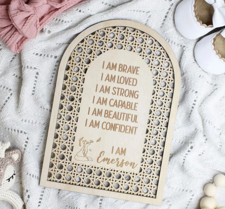 Our beautiful wooden affirmation boards can be personalised with your child’s name.