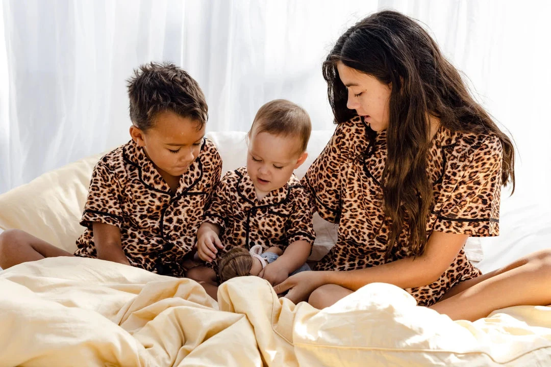 This soft luxe satin fabric set features contrasting piped detailing with a closed pocket, matching buttons, a collared shirt, short sleeves, and ribbon tied shorts with one pocket.