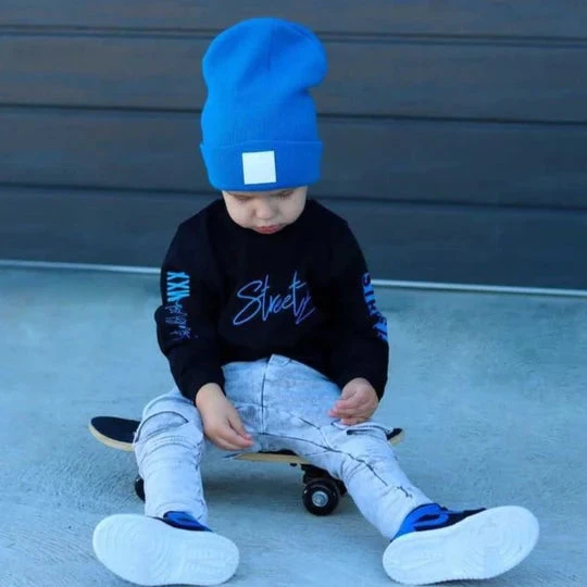 Our signature knit Beanies come in one size fitting kids from 2 years – Teenagers even some adults.