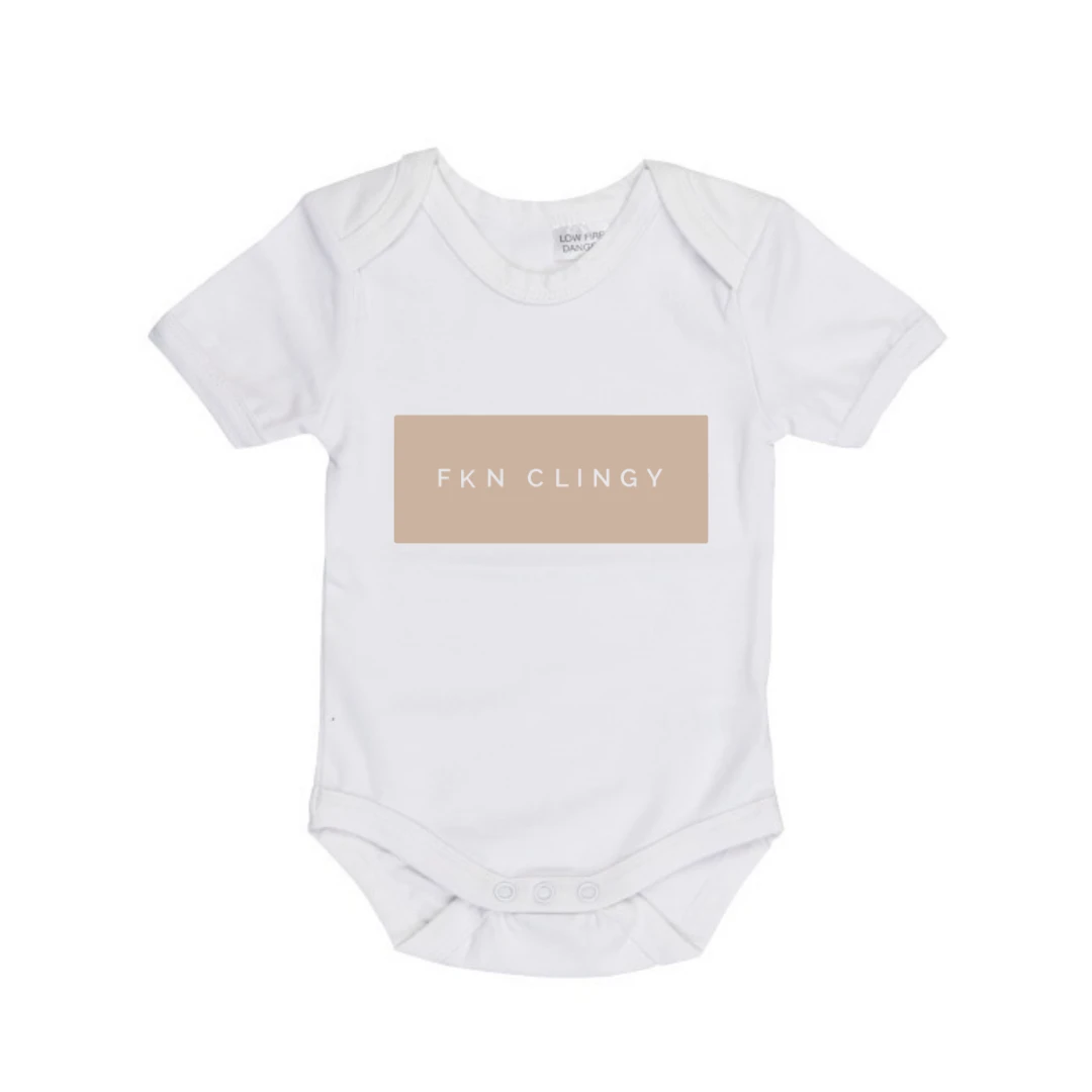 Some days they are just so FKN CLINGY. So we made a bodysuit about it! Designed and printed by us here on the Gold Coast.