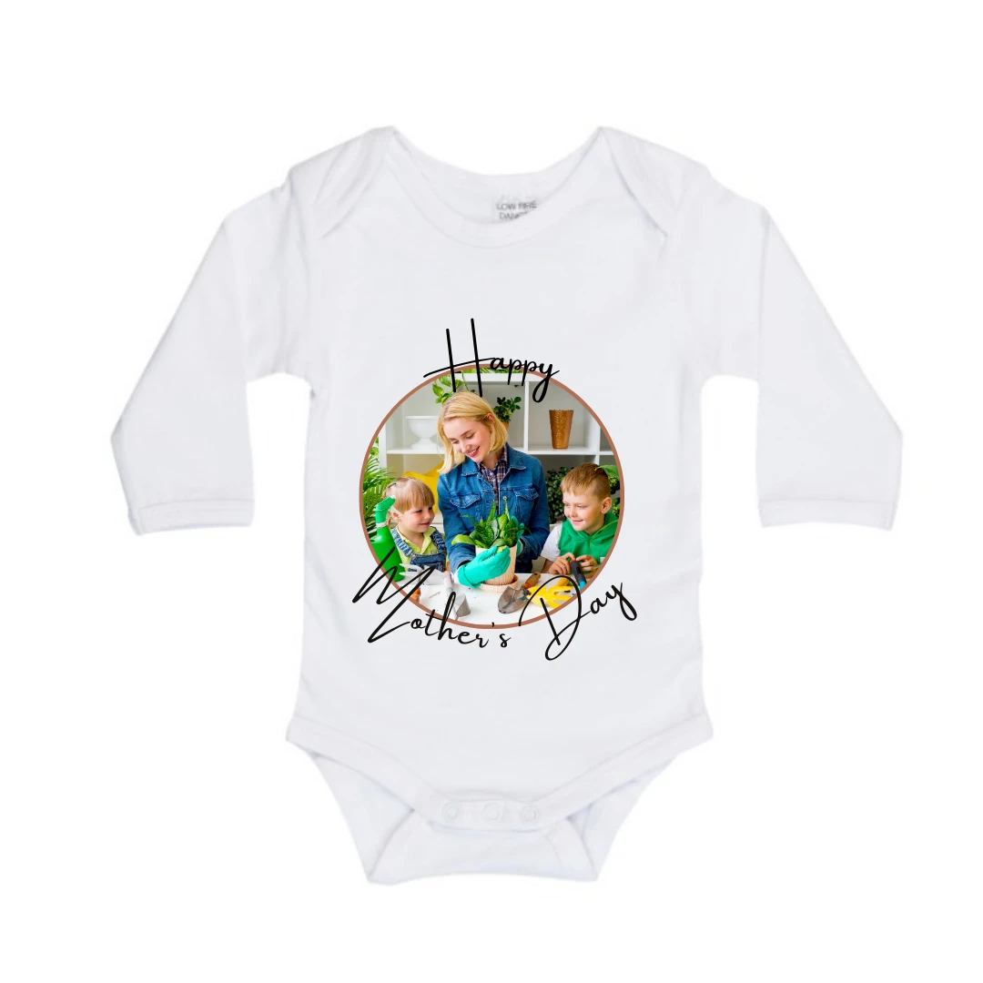 The cutest & most perfect bodysuit for bub to wear on Mother’s day. Simply upload your favourite, most treasured mother & bub photo and we will print it for you on a bodysuit for you.
