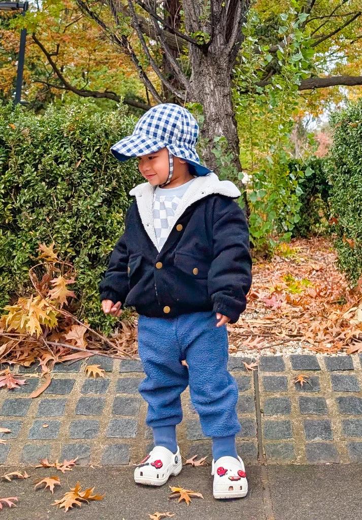 The Roy jacket is a classic piece with button-flap pockets for your little one to store their pacifier, small toys or fidgets in. The large single-breasted buttons are easy to pull open to make undressing your child easy or when you simply need to cool them down a little.
