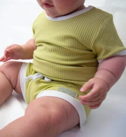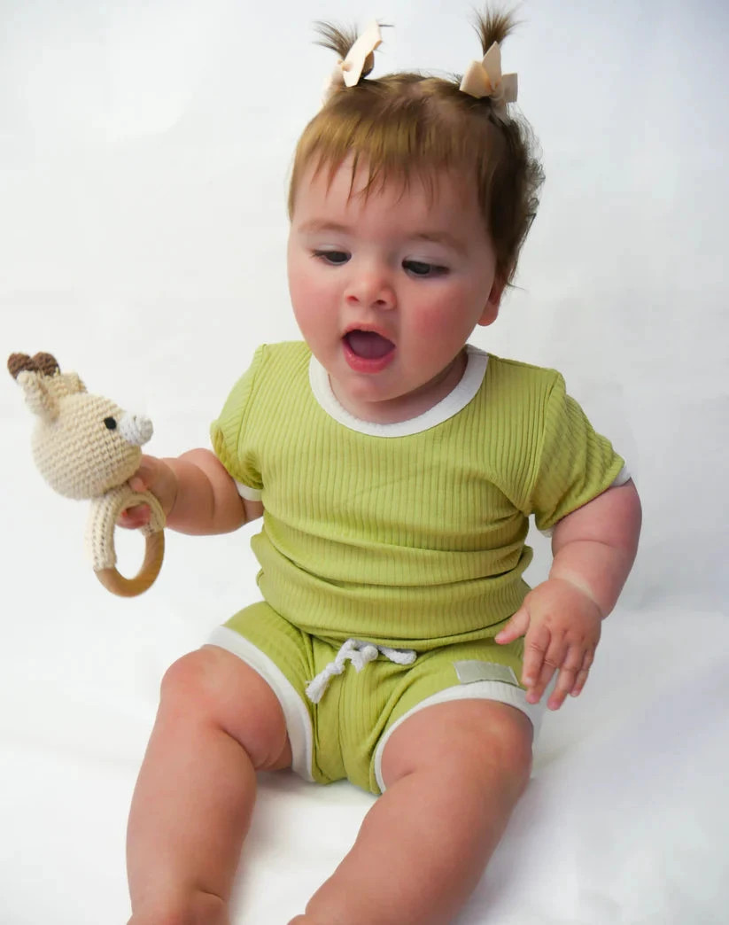 Designed for warmer weather, the Playroom Ribbed Tee-Short Set (Sour Apple) is made from a lightweight and breathable material. With a beautiful shade of green that compliments all skin tones, this set provides both comfort and style. Perfect for park dates and beach trips.