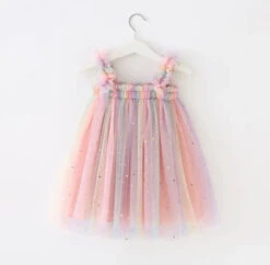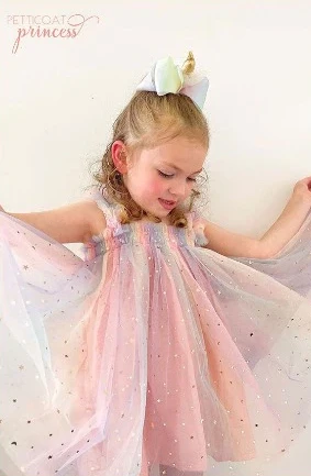 Stunning pink rainbow ombré tulle with sparkly gold stars. This dress is all about happiness, fun and celebrations, making it the perfect tulle dress for birthdays, parties and cake smashes. These dresses are lined with soft cotton.