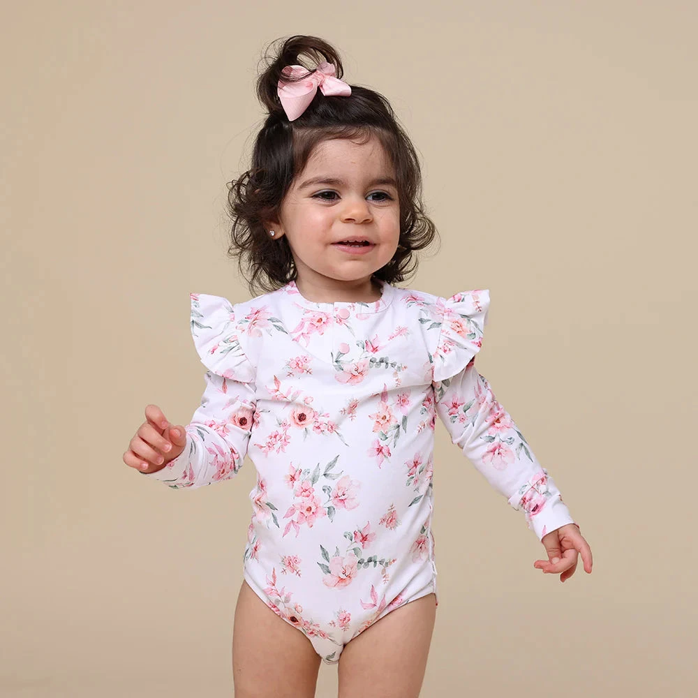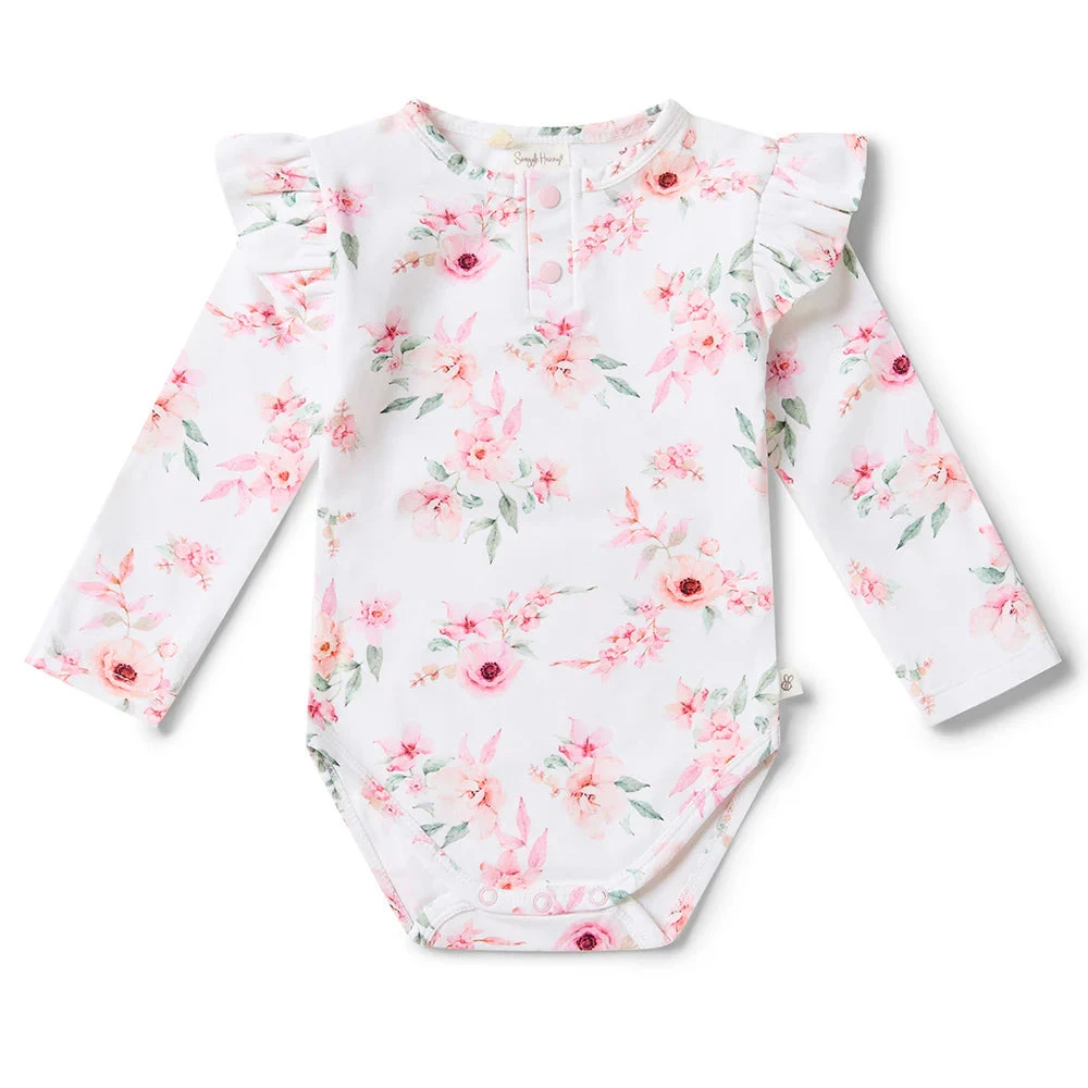 Snuggle Hunny organic bodysuits are made for babies and toddlers and our exclusive Camille print is bold, bright and beautiful. This bodysuit is long-sleeved, and great for cooler days in Summer and Winter under layers.