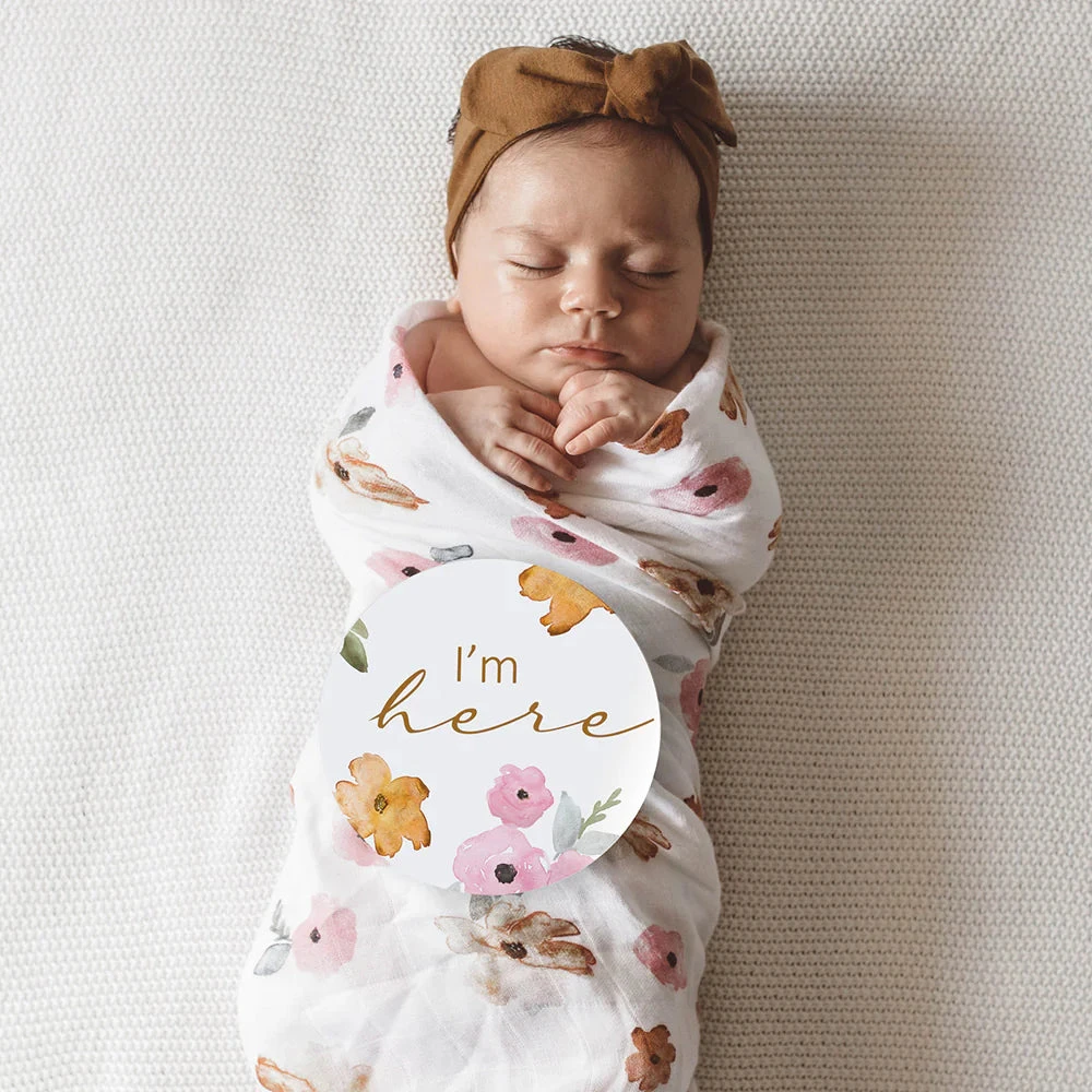 Capture your baby’s milestone moments and document their ‘firsts’ with our Poppy & Blush Pink Milestone Cards. Perfect for that birth announcement photo; they match beautifully with our Poppy muslin wrap. 25 Reversible Cards.