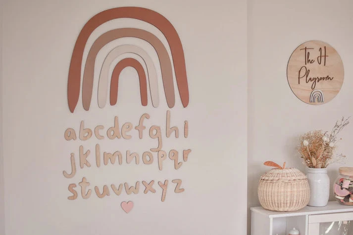 This unique Alphabet makes a cute piece of wall decor in any nursery, playroom or kid’s room. Specifications: Each letter are 3mm thick natural plywood and come in various sizes. Sizing is based on standard letter height minimum. Some letters will be larger in size.