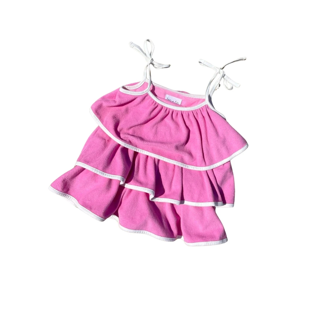 Our Terry Twirl Dress is designed for every girl who loves to twirl! Featuring a stunning pink hue, this dress is perfect for adding a playful pop of colour to any occasion. Made from soft, lightweight terry towelling cotton, she is perfect for a day of adventures or a special celebration. With adjustable straps, your mini will be wearing this beauty for months ahead. We know this dress will have your little mini spinning in delight and looking adorable!