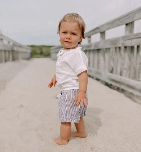 The most gorgeous set for your bub. A linen-like fabric top with functional buttons and pinstripe shorts. It’s the ultimate beach outfit.